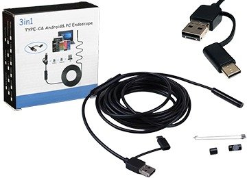 ENDOSCOPIO CAMARA 6MM 2M FLEXIBLE ANDROID PC 3 EN 1 USB MICROUSB Y USB TIPO C – LUZ