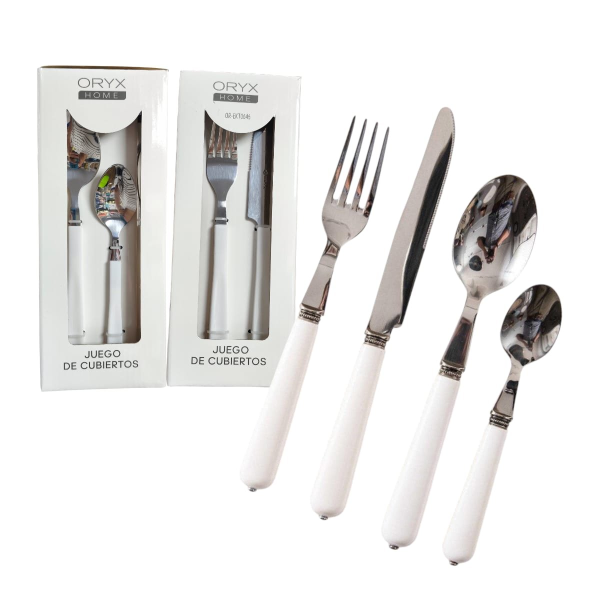 JUEGO SET CUBIERTOS ORYX 24PCS BLANCO/NEGRO